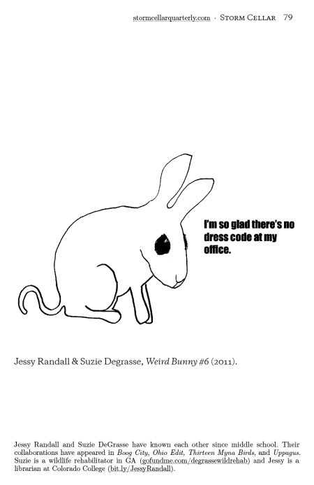Today we’ve got a good one for a Wednesday, fellow bun-bun thinkers, or really for any day at all, it’s Jessy Randall & Suzie DeGrasse’s collaboration Weird Bunny #6: