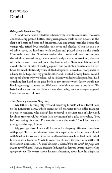 We’re delighted to bring you a flash piece from our latest issue, #6.3: here’s Kat Gonso’s biting, antediluvian “Daniel.”
