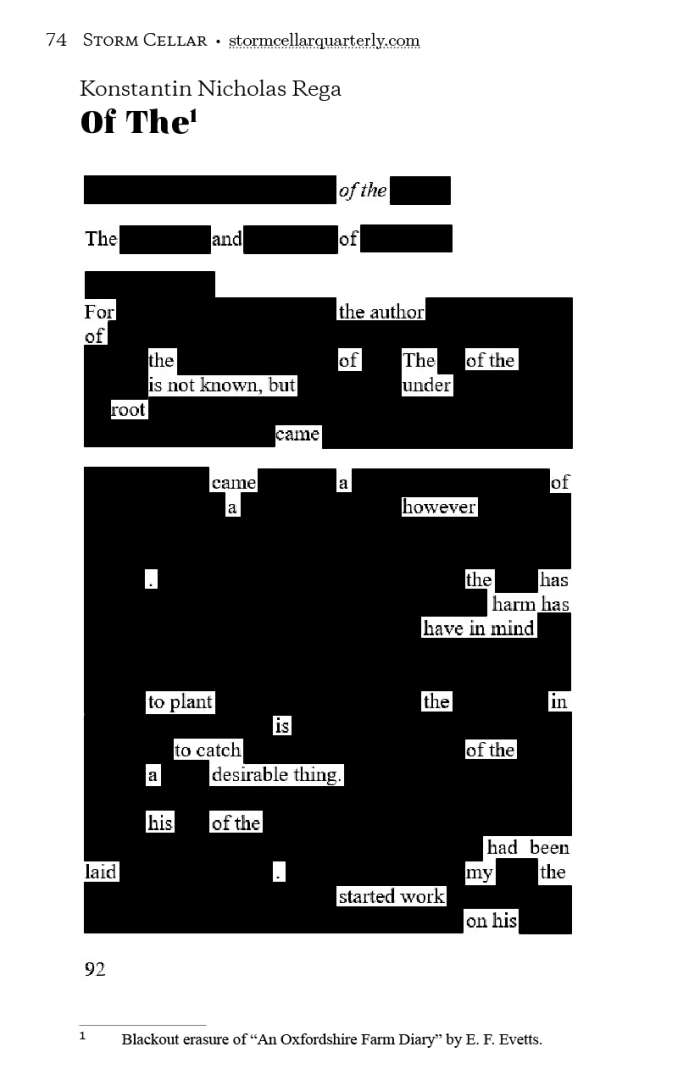It’s a blackout day, a mystery of touch and want, oh Reader, and here among the fantastical countryside of the mythical past comes a blacked-out poetic explosion, Konstantin Nicholas Rega’s [>>] “Of The“: