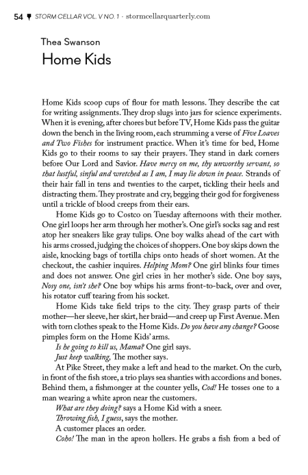 Fret not, Reader, here is the cooling salt of “Home Kids,” Thea Swanson’s flash about the slurping swallow of a crowded market… maybe: