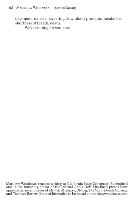 All of these flashes will appear in Storm Cellar Vol. X No. 1, due in winter 2021-22. Our deepest thanks to everyone who entered the contest — we are exhausted in the best way by the volume of excellent flash we read this year. Thank you so much!