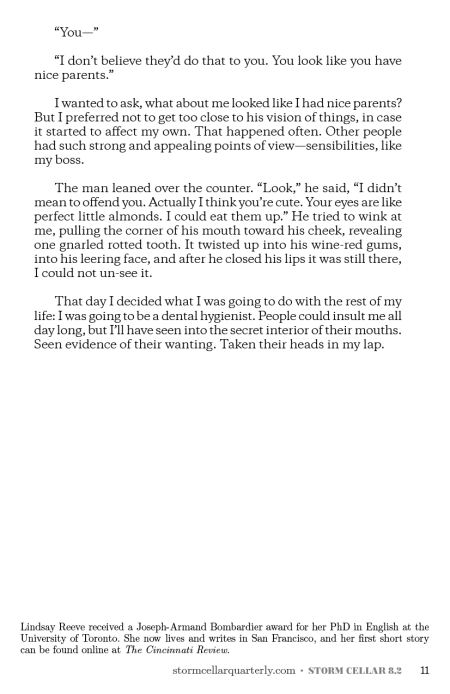 This prose poem appeared in Storm Cellar #5.2, available from our store in print and ebook format; click current for the latest, and subscribe for more like this. & read on.
