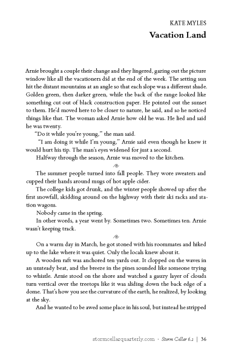 The best for last, Dear Reader, this story, it’s something maybe on your mind this month, Kate Myles’s “Vacation Land“:
